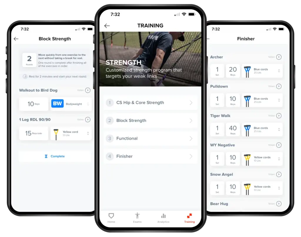 Based on the data collected from your Fresh Exam, throwing workload, and expected throwing workloads, the app prescribes exercises designed to strengthen weaknesses, enhance speed and power, and promote recovery.