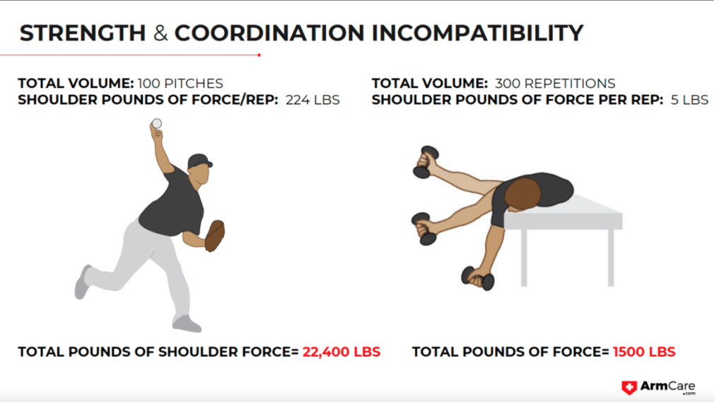 As a result, when you think of all the pitches thrown in a game and try to equate training, the force multiplier of pitches thrown shows the true amount of loading that accumulates. When you design exercise training, you need to be strategic about how you will train capacity, especially through the shoulder joint.