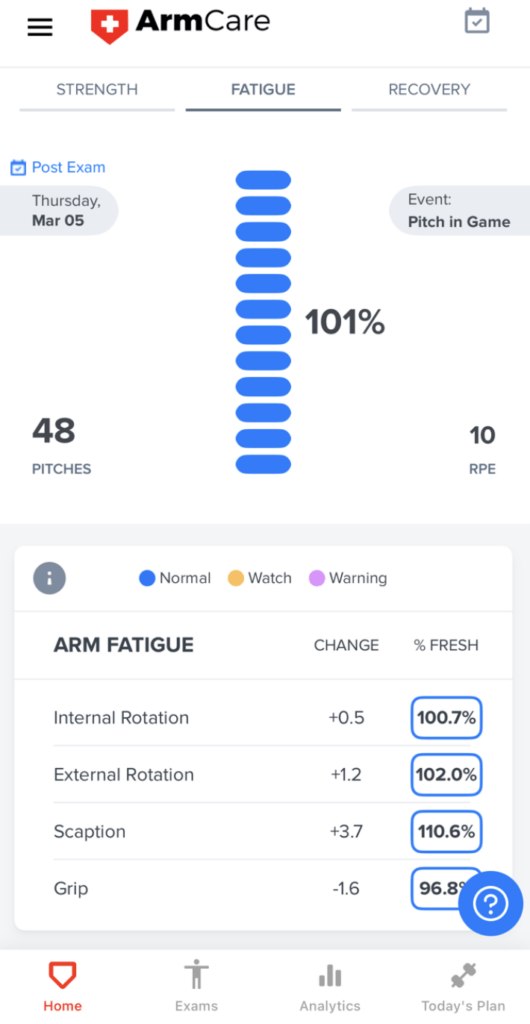 Just make sure to perform a fresh ArmCare exam before heavy-throwing days, and the post-exam afterward.