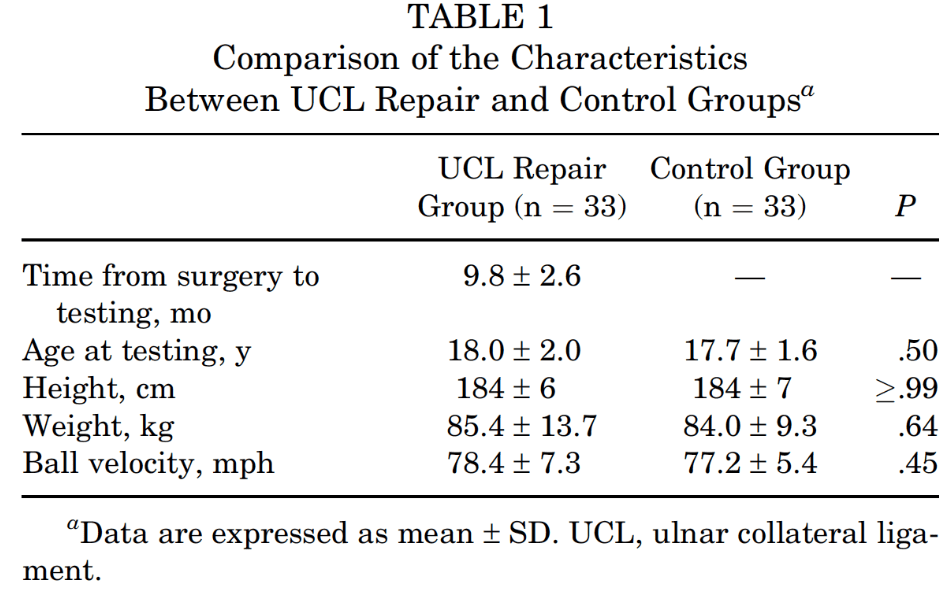 In this study, as soon as athletes could play games after TJ surgery, they were brought in to be analyzed and compared to healthy matched controls.