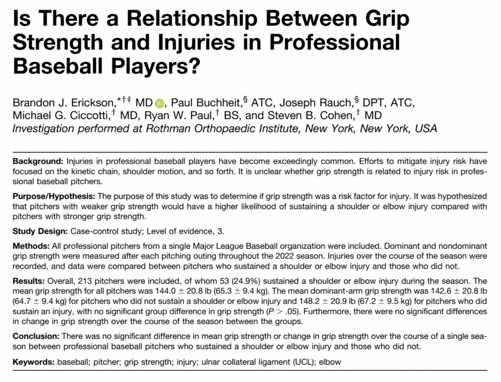 Grip strength isn’t useless—but on its own, it’s an incomplete and often misleading metric for injury risk in pitchers.