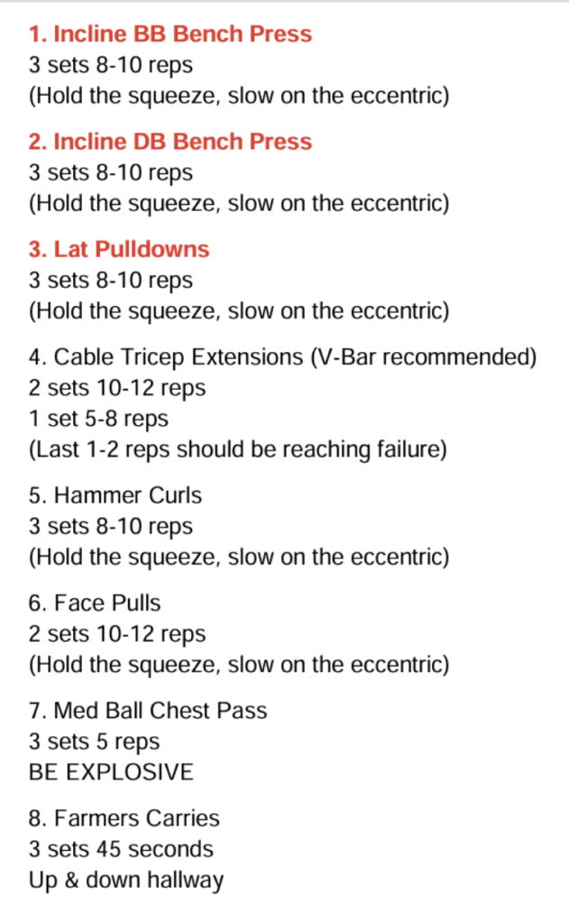 On the right is an upper-body training program that may be written for this athlete, which could cause further imbalance. The first three exercises activate the internal rotator cuff heavily and would also further activate the pectoralis major, latissimus dorsi, and subscapularis. If the process is player-informed, the exercise approach can shift to accommodate the individual player’s needs.
